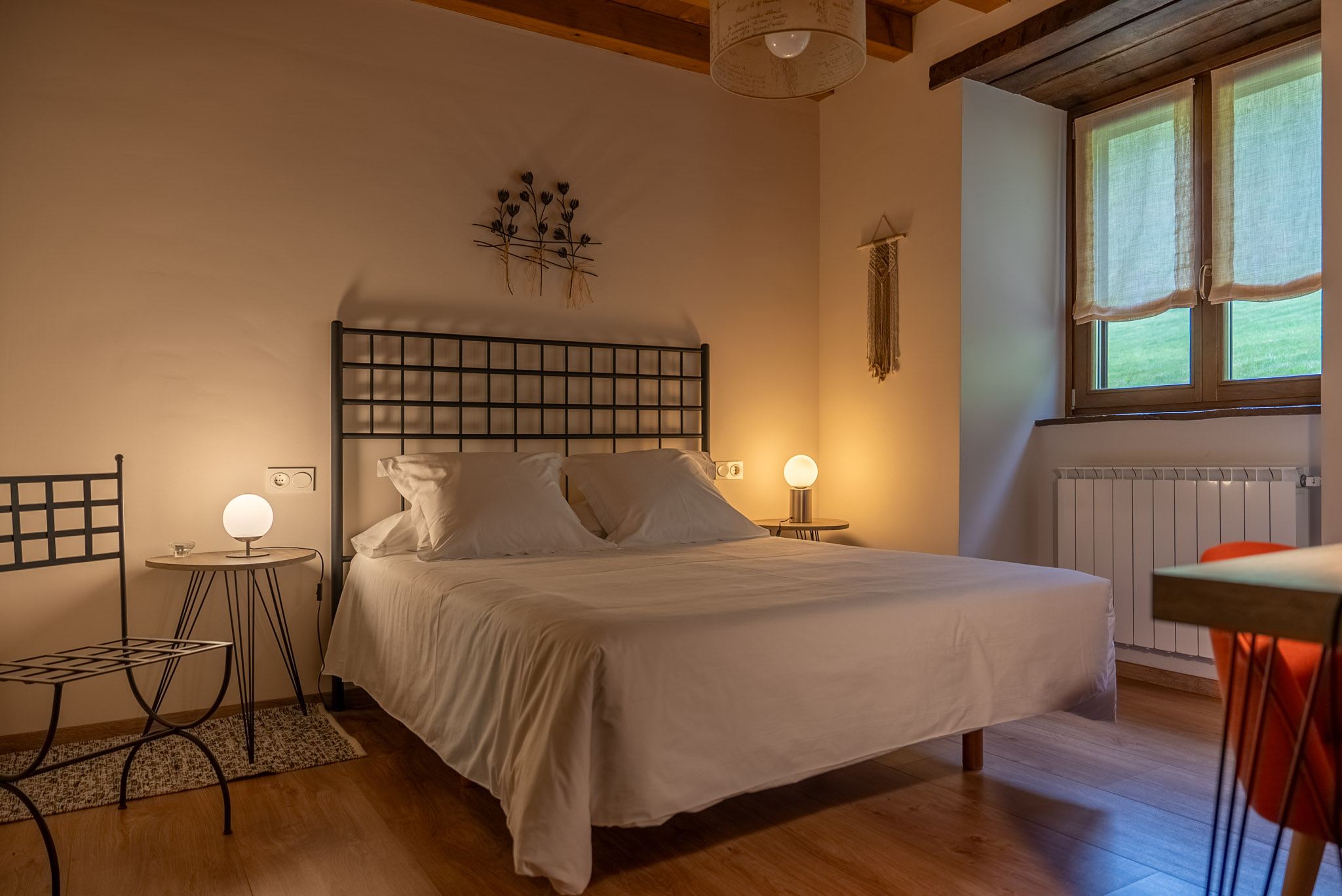 Doble con vistas al monte. En la planta baja, la mejor para escuchar la lluvia fina y sorprender por la mañana desde la ventana a las ovejas en el prado. La más accesible.